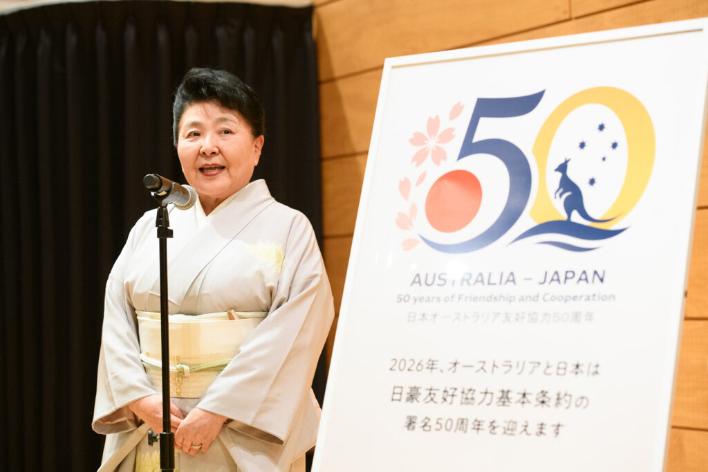 After Mr. Hideaki Ueda, JANZ President as well as the President of the National Federation of Japan Australia Societies gave his opening remarks, heartwarming speeches were given by Ms. Helen Stylianou, Chargé d’Affaires a.i. of Australia, Ms. Lucy Duncan, Chargé d’Affaires a.i. of New Zealand, and Ms. Keiko Okubora, President of the National Federation of Japan New Zealand Societies. Mr. Shintaro Kitagawa, Director of Oceania Division of the Ministry of Foreign Affairs of Japan then proposed the toast. Each speaker commemorated the 50th anniversary of the Basic Treaty and spoke of the importance of the grassroots exchange between the three countries.