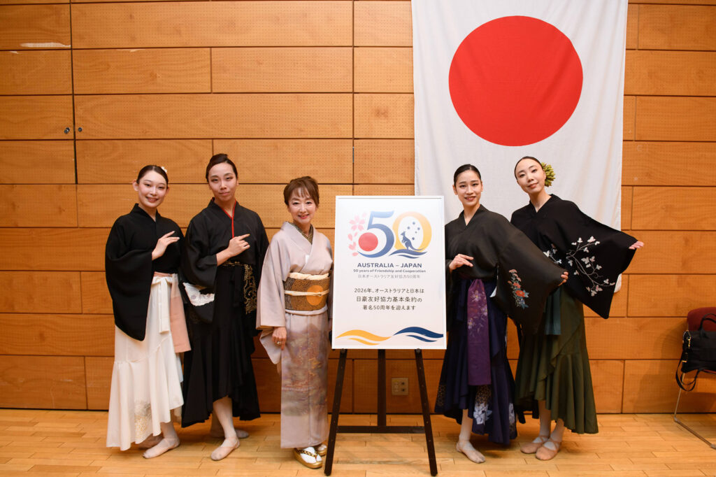 Next on the programme was a fascinating dance performance by four dancers from the FDL (For Dancer’s Life) dancing group. The dancers dressed in kimono-style outfits performed the famous Japanese classical literature, “The Tale of Genji”, showcasing the final days of Hikaru Genji. The dancers performed not on a raised stage but rather used the entire Waratah Hall as their dancing space, which made the performance even more fascinating. A Japanese novel written in the 11th century and contemporary ballet. The performance was indeed a blend of Japanese and Western elements.